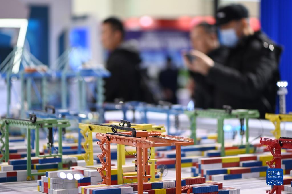 11月17日,觀(guān)眾在參觀(guān)天津港“智慧零碳”碼頭模型。