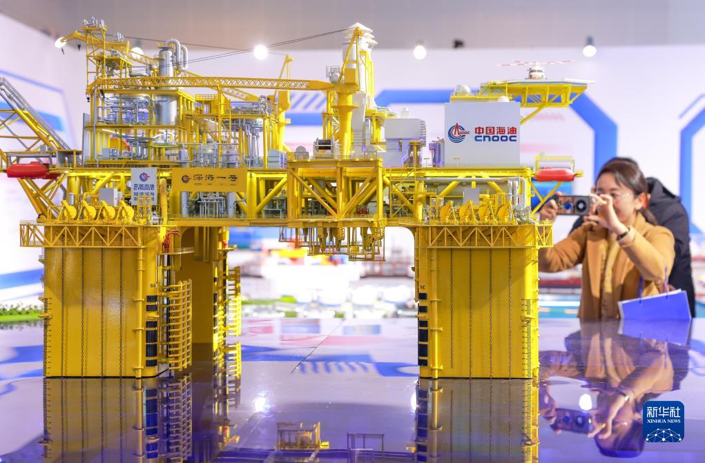 11月17日,觀(guān)眾在參觀(guān)“深海一號”能源站模型。