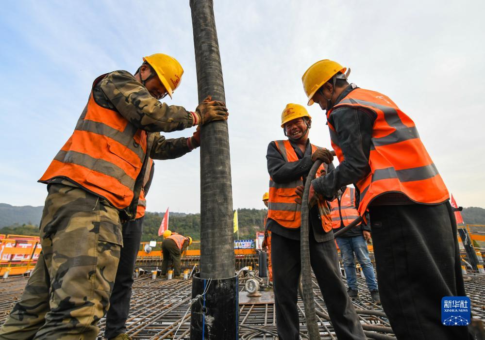 11月17日,工人在進(jìn)行混凝土澆筑作業(yè)。