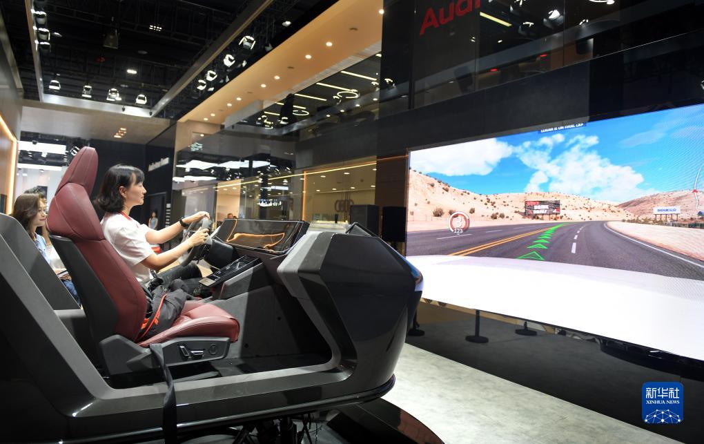 11月17日,觀(guān)眾在廣州車(chē)展上體驗賽車(chē)游戲。