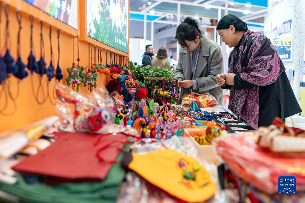 11月17日,觀(guān)眾在2023中國國際旅游交易會(huì )上選購小飾品。