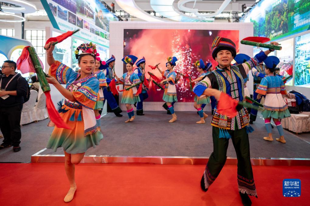 11月17日,演員在2023中國國際旅游交易會(huì )上表演舞蹈。