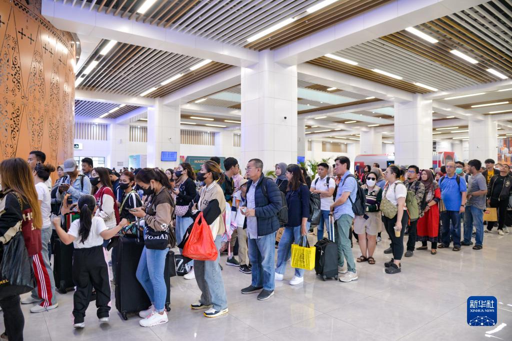 11月17日,在印度尼西亞雅加達的雅萬(wàn)高鐵哈利姆站候車(chē)大廳,人們排隊等待前往站臺。