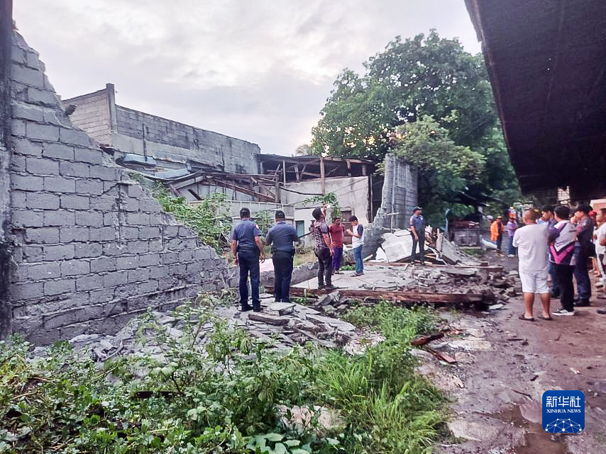 11月17日,在菲律賓桑托斯將軍城,人們查看地震造成的房屋損毀情況。