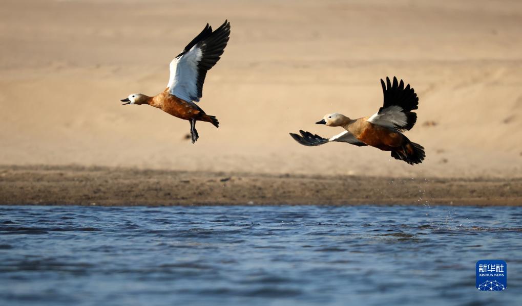 11月18日,水鳥(niǎo)在沂河山東省臨沂市郯城縣郯城街道段飛舞。