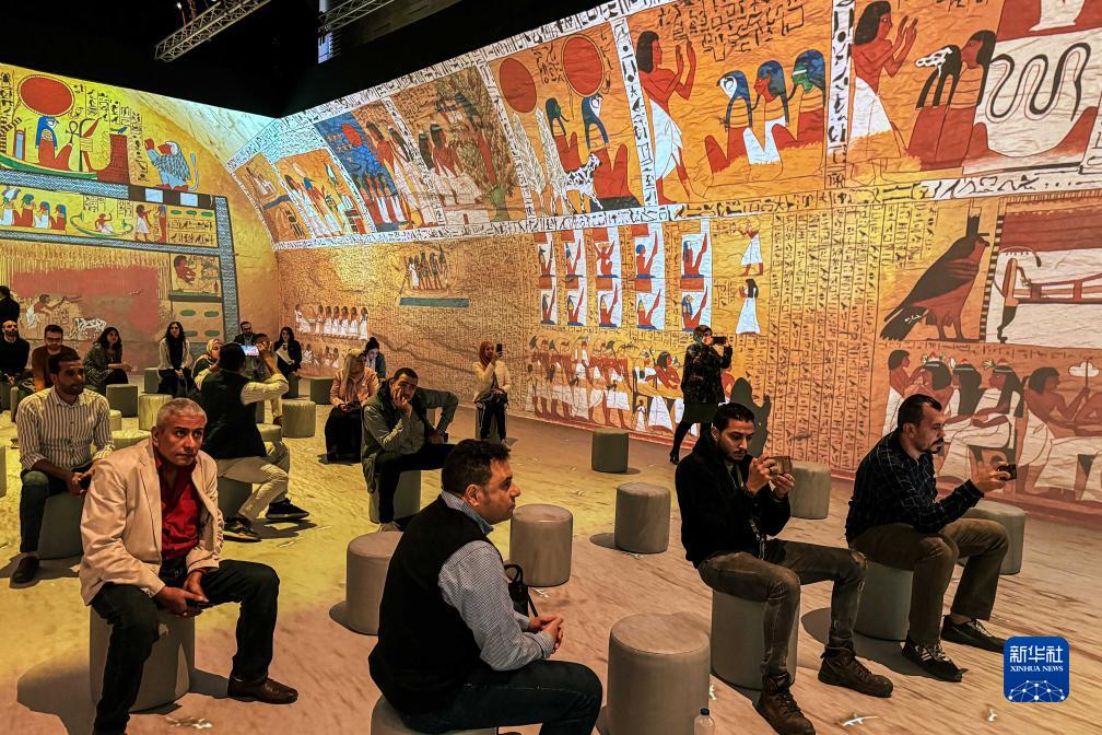 11月20日,人們在埃及吉薩的大埃及博物館參觀(guān)圖坦卡蒙沉浸式展覽。