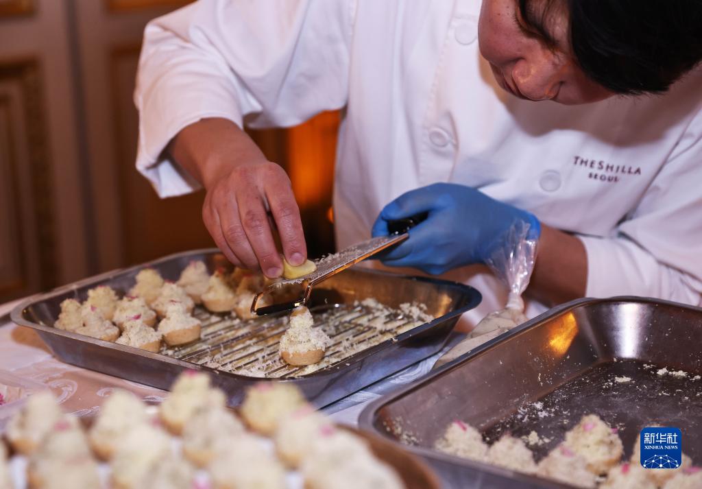 11月20日,在位于巴黎的法國外交部舉行的LA LISTE國際美食榜單揭曉活動(dòng)現場(chǎng),來(lái)自韓國的主廚為來(lái)賓準備美食。