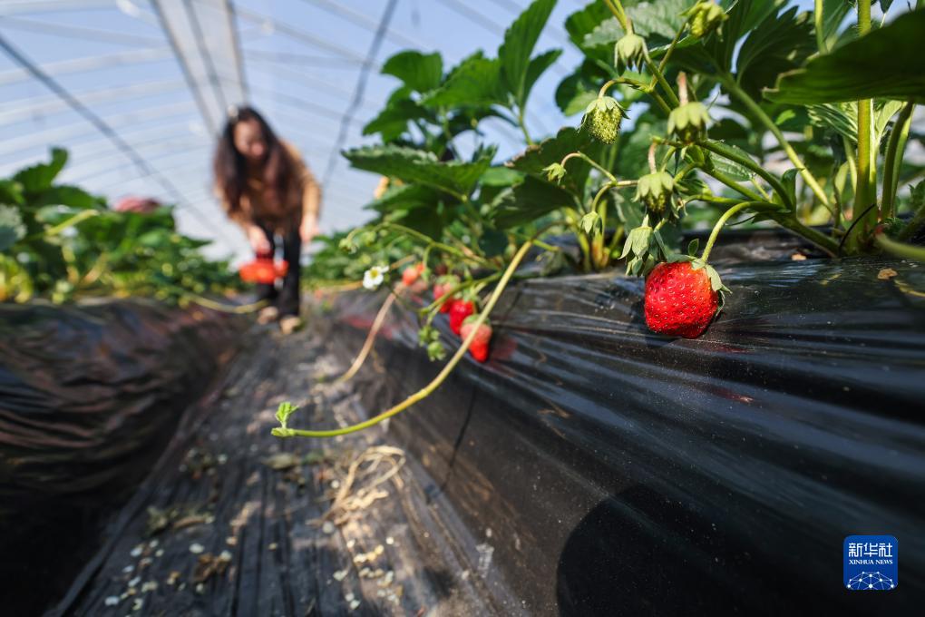 在浙江省建德市更樓街道“更有味”草莓共富合作工坊大棚內,“頭茬”早熟草莓搶鮮上市。莓農們忙著(zhù)采收新鮮草莓,通過(guò)快遞發(fā)往杭州、上海等多地市場(chǎng)。