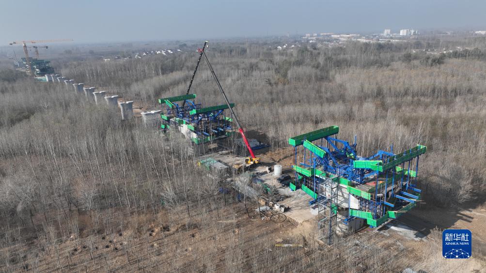 11月21日,在濟濱高鐵惠民段,山東路橋集團的工作人員在進(jìn)行橋墩施工作業(yè)(無(wú)人機照片)。