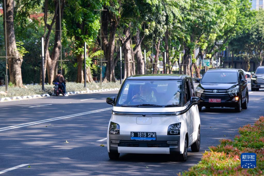 9月29日,在印度尼西亞雅加達街頭,一位車(chē)主駕駛著(zhù)自己的五菱新能源車(chē)Air ev。新華社記者 徐欽 攝