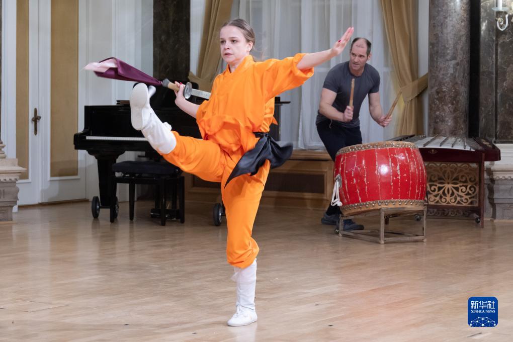 這是11月20日在匈牙利布達佩斯舉行的羅蘭大學(xué)中文系成立100周年慶典上拍攝的中國功夫表演。