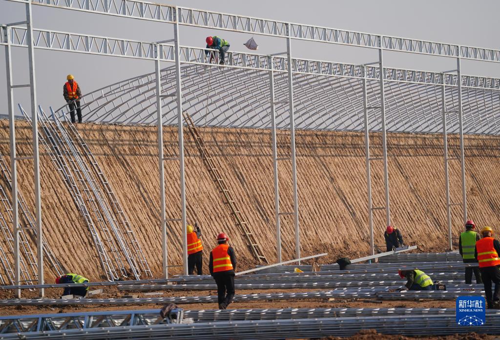 工人在進(jìn)行饒陽(yáng)縣農村產(chǎn)業(yè)融合發(fā)展示范園項目施工(11月20日攝)。
