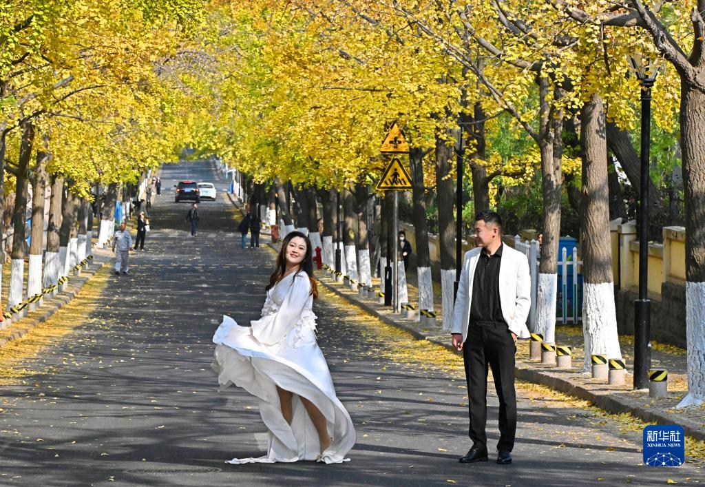 11月21日,一對新人在青島市南八大關(guān)景區內拍攝。