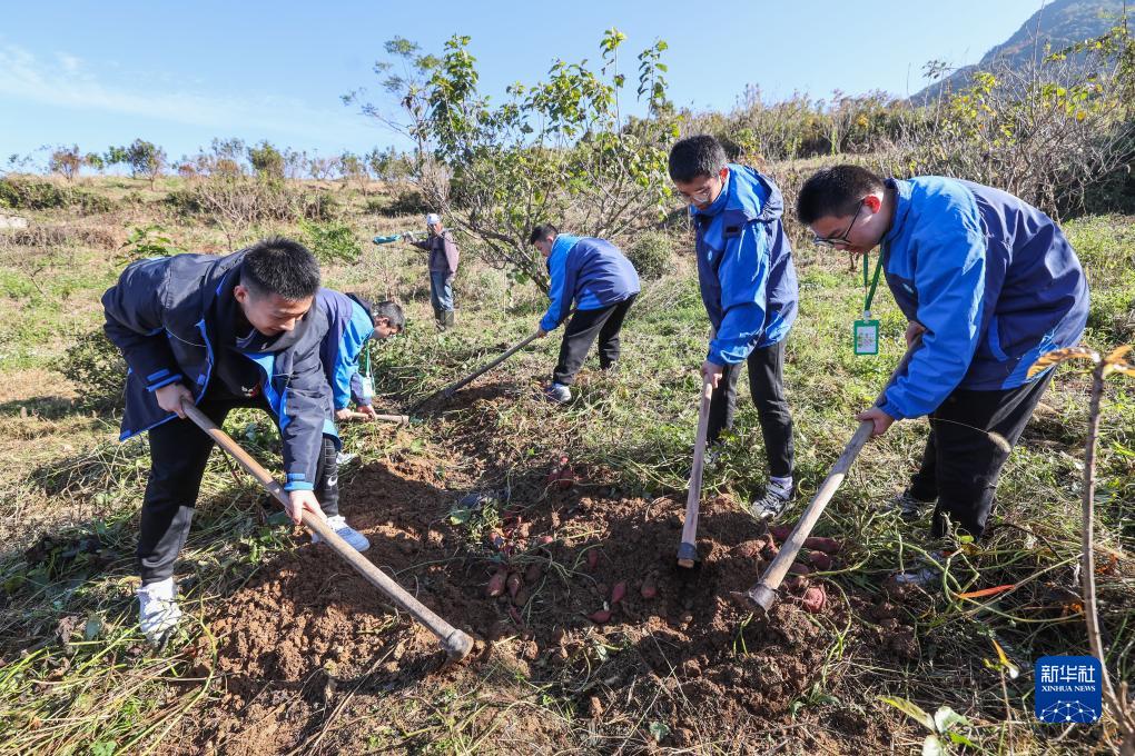 11月22日,學(xué)生在趙家鎮花明泉村明樂(lè )果業(yè)實(shí)踐基地收番薯。
