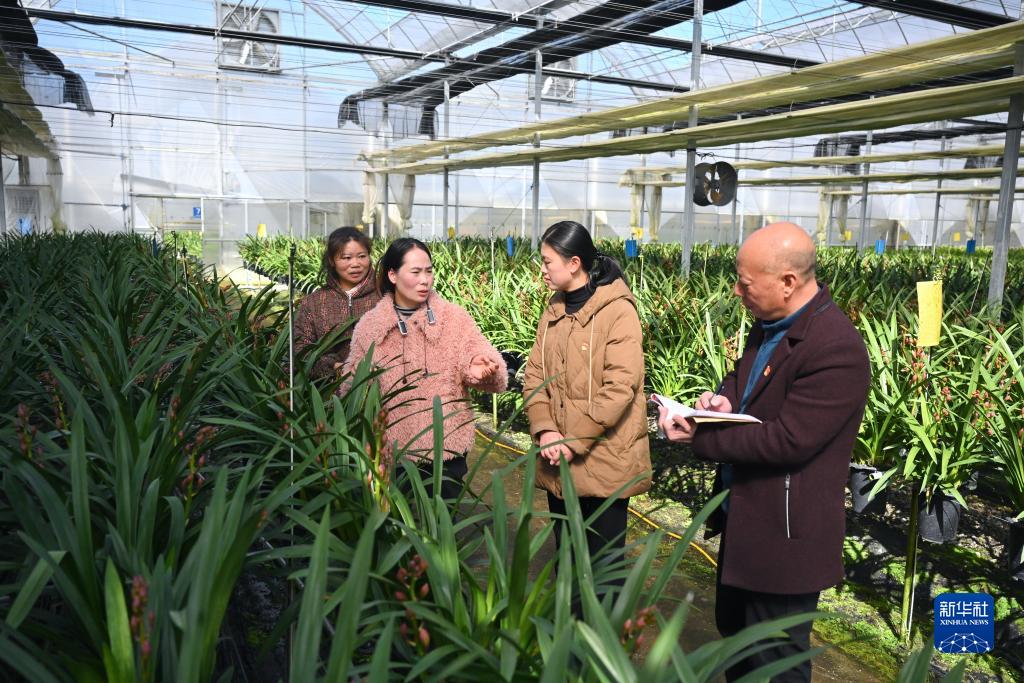 11月17日,在位于周寧縣浦源鎮的寧德向山蘭園植物科技有限公司花卉大棚內,浦源鎮黨委書(shū)記李丹舟(右二)帶領(lǐng)鄉村振興指導員(右一)向公司負責人了解企業(yè)經(jīng)營(yíng)情況。