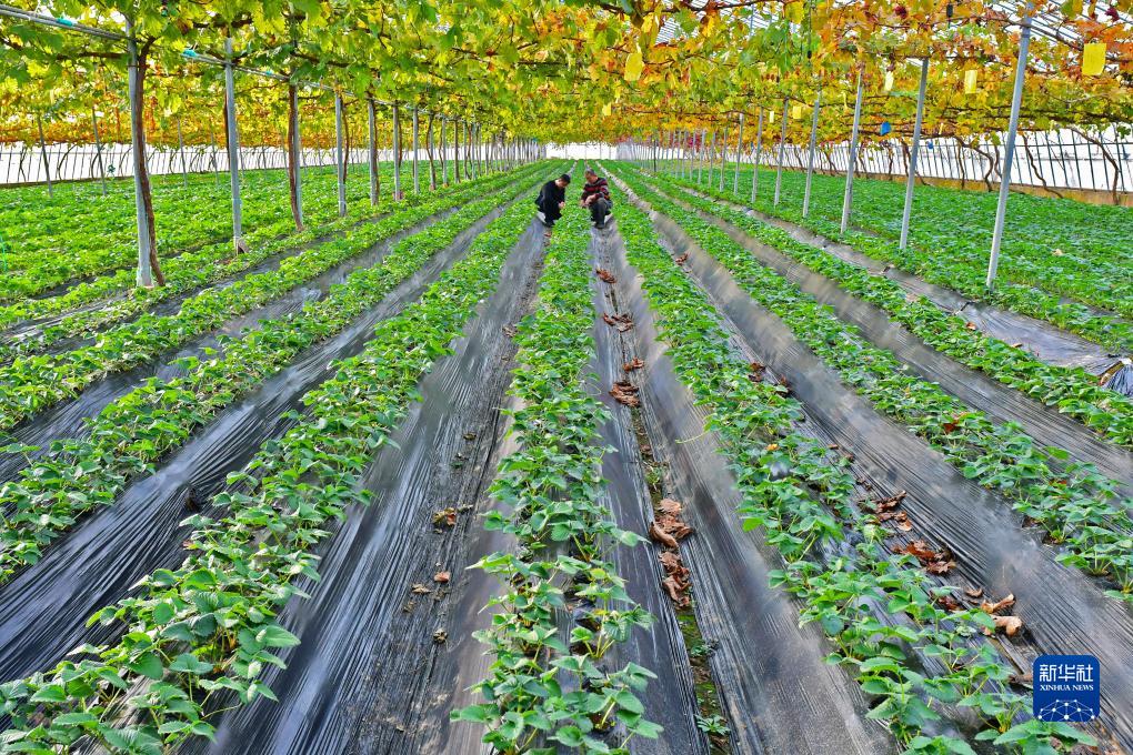 11月22日,農民在山東省煙臺市福山區門(mén)樓街道肖家村碧樹(shù)農園管護草莓。