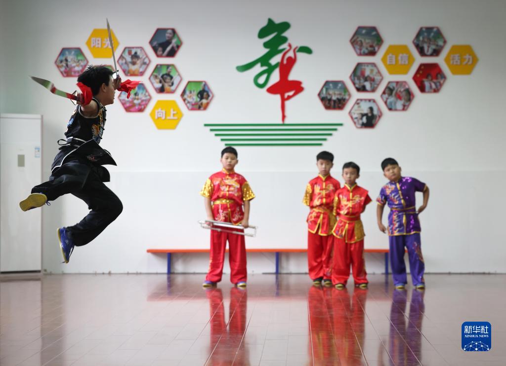 11月22日,河北省霸州市勝芳鎮紅光小學(xué)的學(xué)生在練習武術(shù)。