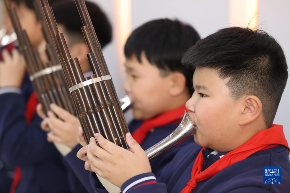 11月22日,河北省霸州市勝芳鎮紅光小學(xué)的學(xué)生在排練笙管樂(lè )。