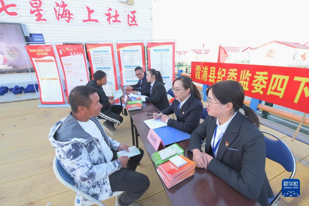 福建省寧德市霞浦縣溪南鎮七星海域,碧波蕩漾,航道寬闊,疾速行駛的快艇激起陣陣浪花,兩側是一片片現代化的養殖漁排。走進(jìn)七星海上社區,黨群服務(wù)中心、志愿服務(wù)站、海上綜治中心等設施一應俱全,工作人員正為海上居民提供法律咨詢(xún)、信訪(fǎng)接待、矛盾化解、水產(chǎn)養殖技術(shù)咨詢(xún)等服務(wù)。