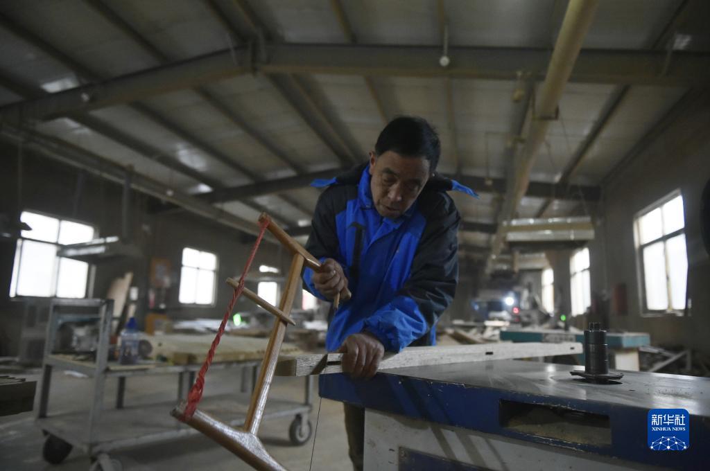 11月22日,工人在滑縣半坡店古典家具特色小鎮內一家企業(yè)的生產(chǎn)車(chē)間制作家具。