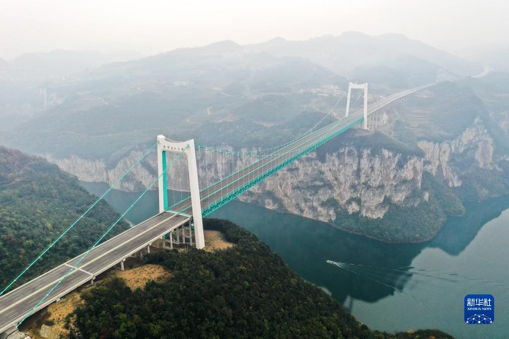 這是11月23日拍攝的貴金高速公路金烽烏江大橋(無(wú)人機照片)。