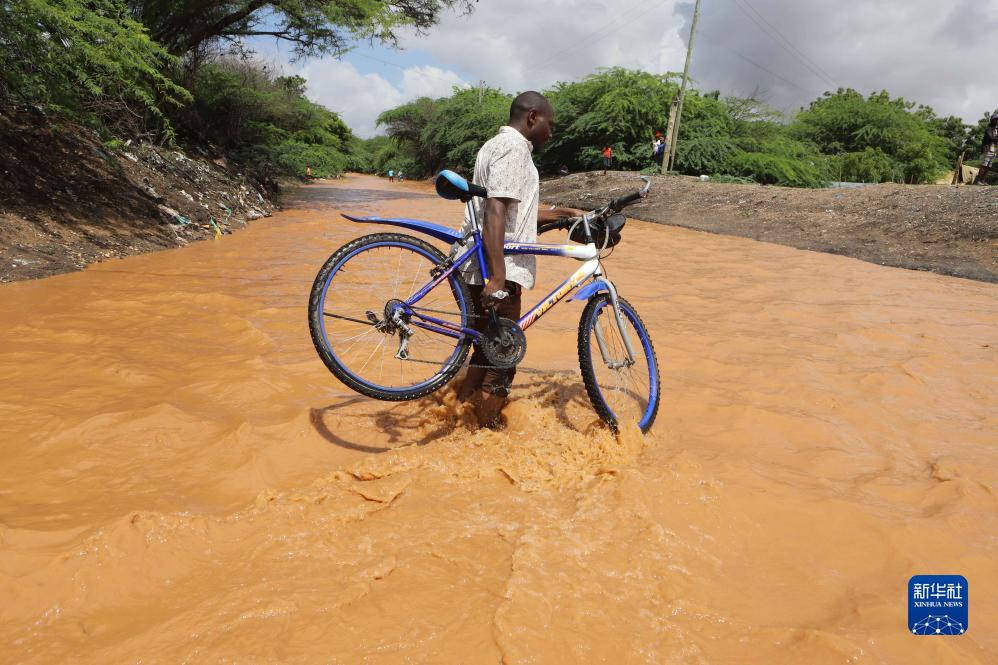 11月22日,在肯尼亞加里薩,行人涉水前進(jìn)。