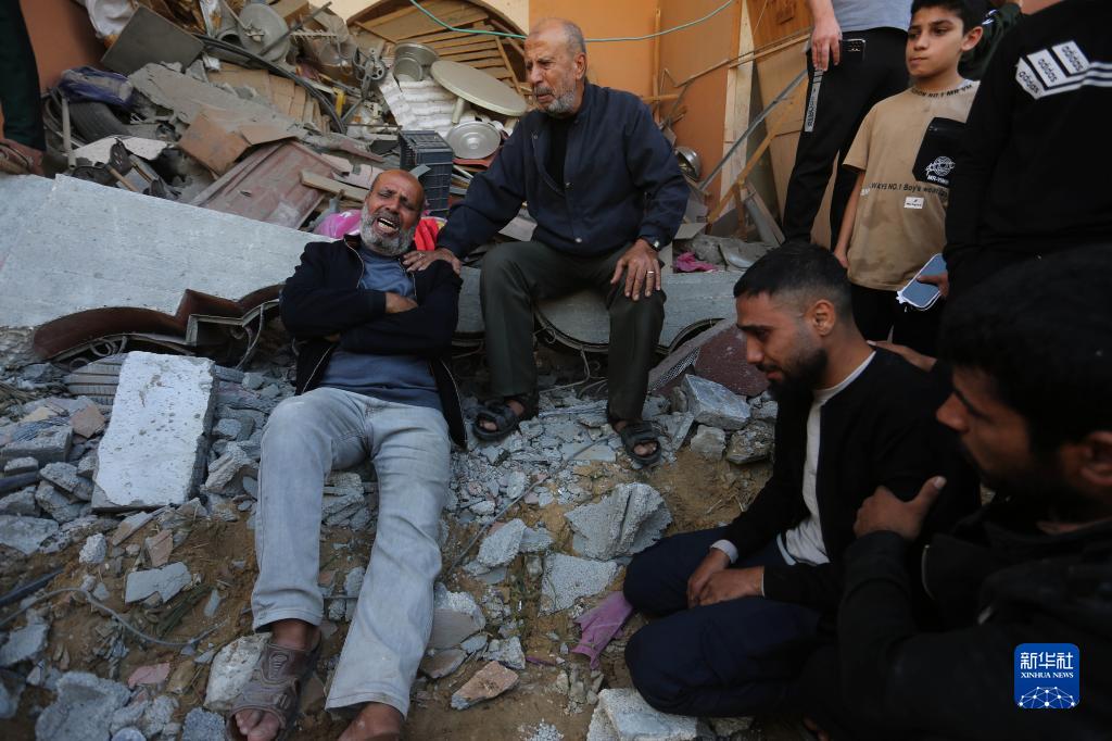 11月23日,人們在加沙地帶南部城市拉法一處廢墟中哭泣。