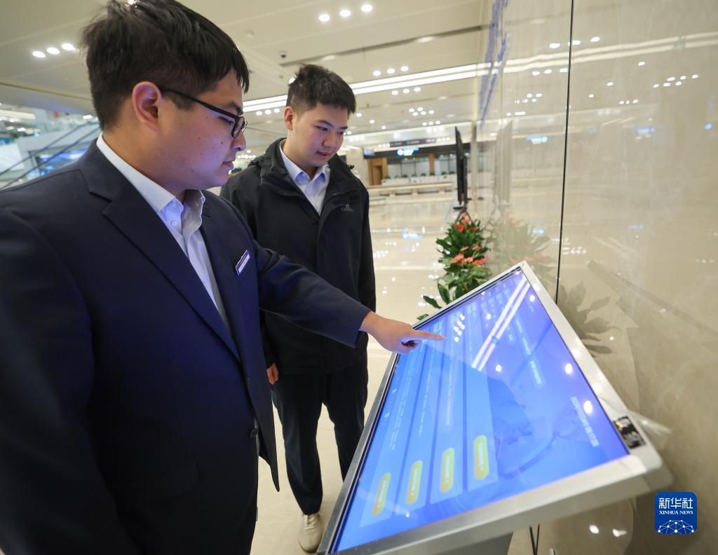 11月24日,臨安區企業(yè)綜合服務(wù)中心的工作人員(左)在向企業(yè)主介紹金融產(chǎn)品。