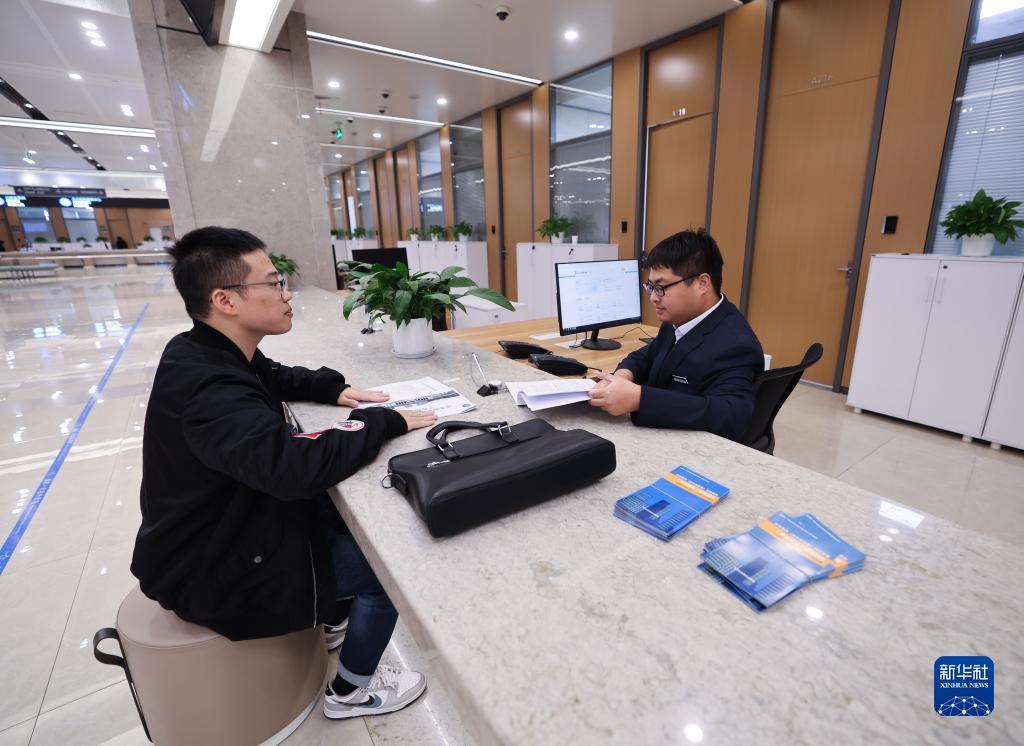 11月24日,企業(yè)主在臨安區企業(yè)綜合服務(wù)中心的金融服務(wù)專(zhuān)窗辦理業(yè)務(wù)。