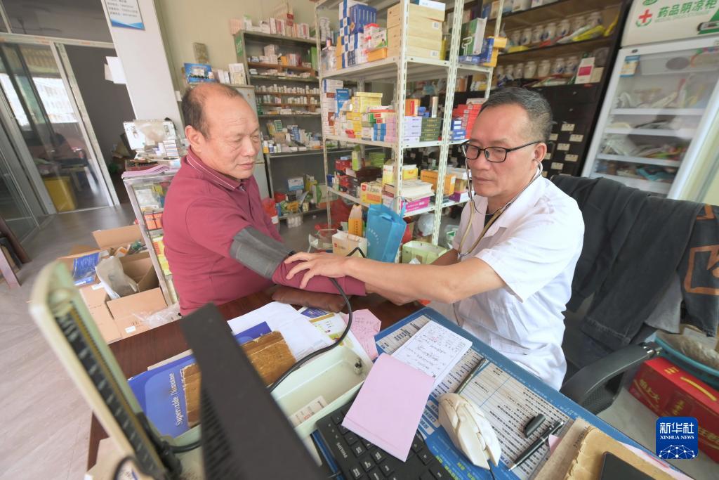 11月15日,下岐村衛生所村醫在為村民王建德(左)進(jìn)行健康檢查。