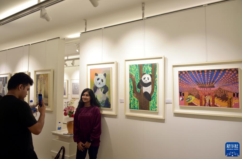 11月22日,在孟加拉國達卡,人們在“國家印象”繪畫(huà)展上參觀(guān)拍照。