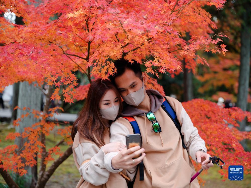 11月24日,游客在日本京都南禪寺合影留念。
