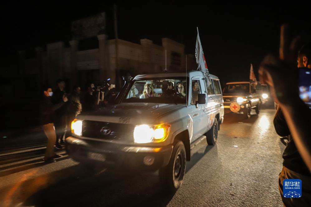 11月24日,紅十字國際委員會(huì )工作人員將被釋放人員送往加沙地帶南部拉法口岸。