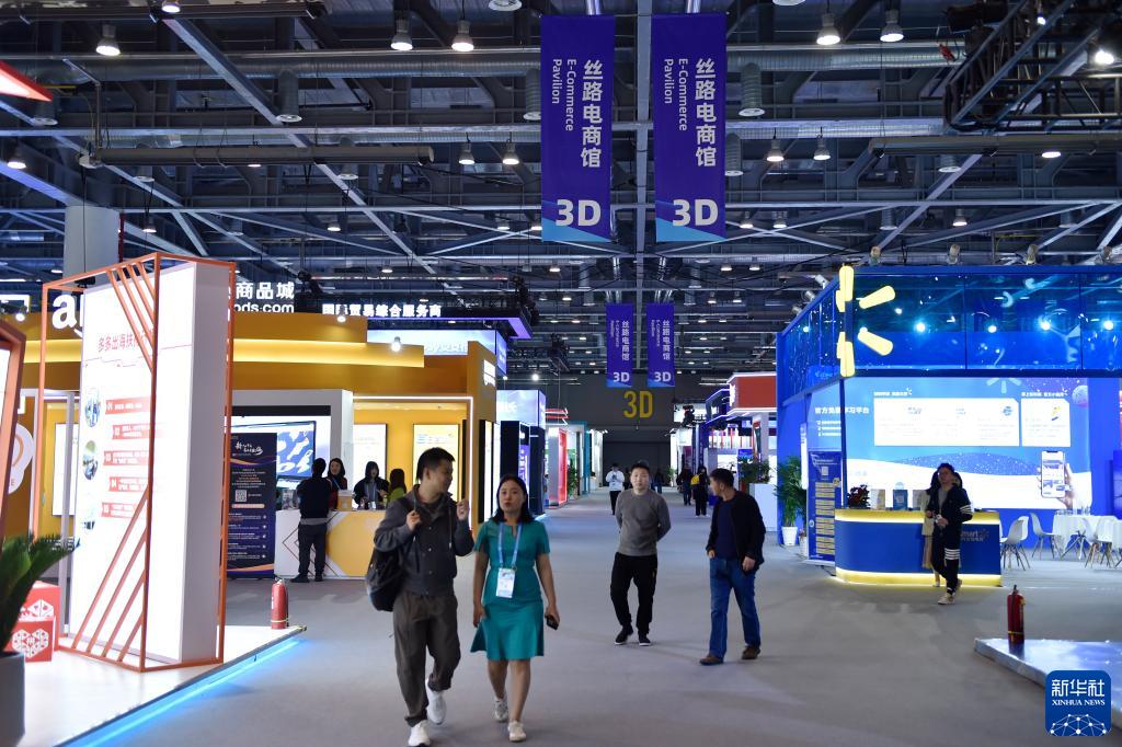 觀(guān)眾在第二屆全球數字貿易博覽會(huì )絲路電商館參觀(guān)(11月23日攝)。