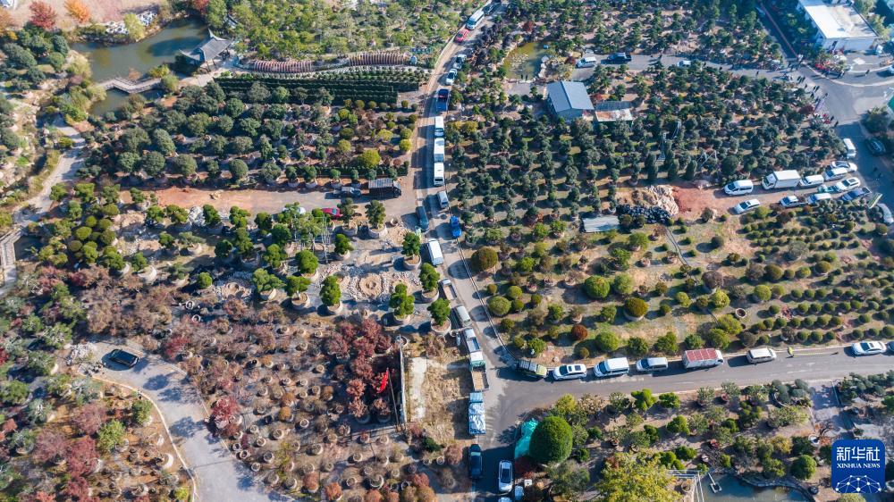 11月25日,空中俯瞰第二十一屆中國(金華)花卉苗木博覽會(huì )的舉辦地金華市金東區澧浦花木城(無(wú)人機照片),該花木城2022年銷(xiāo)售額突破30億元。