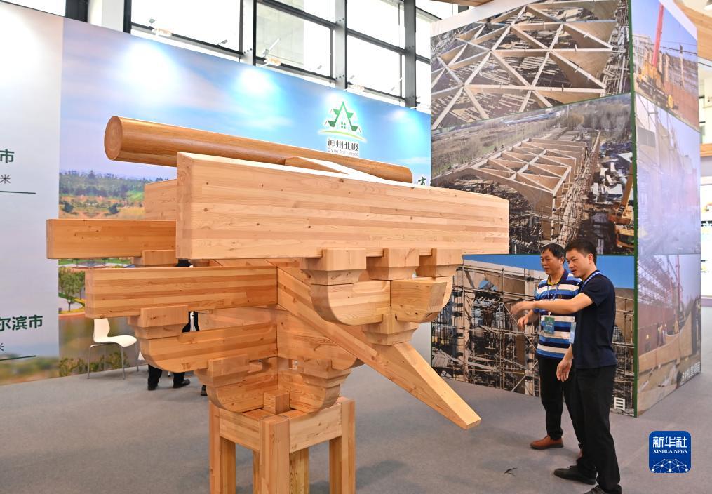 11月25日,觀(guān)眾在南寧國際會(huì )展中心參觀(guān)榫卯結構模型。