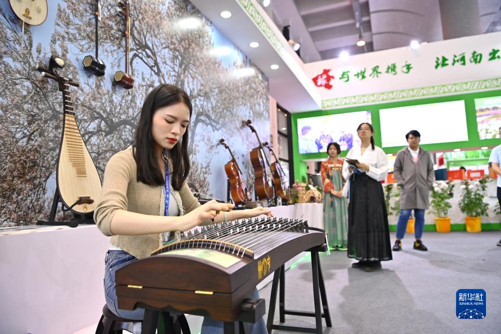 11月25日,工作人員在南寧國際會(huì )展中心彈奏古箏。