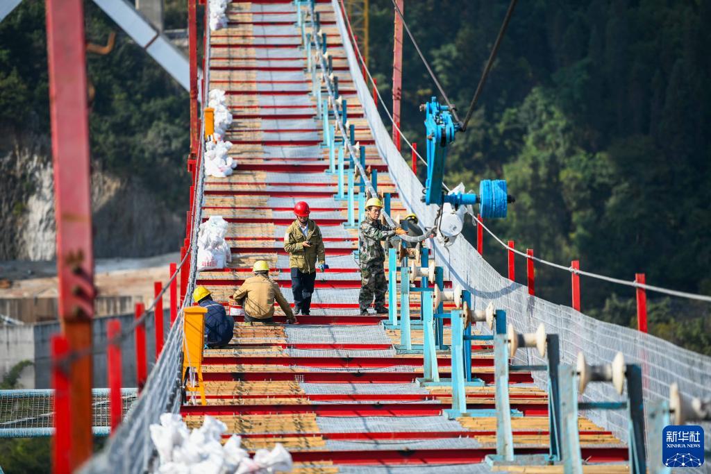 當日,由貴州公路集團承建的貴州省黔西南布依族苗族自治州興義市金州大橋首根主纜索股順利牽引,標志著(zhù)大橋正式進(jìn)入主纜架設階段。金州大橋是貴州省跨徑最大的市政懸索橋,是連接興義市和義龍新區的重要城市通道,大橋全長(cháng)1600米,設計時(shí)速60公里。