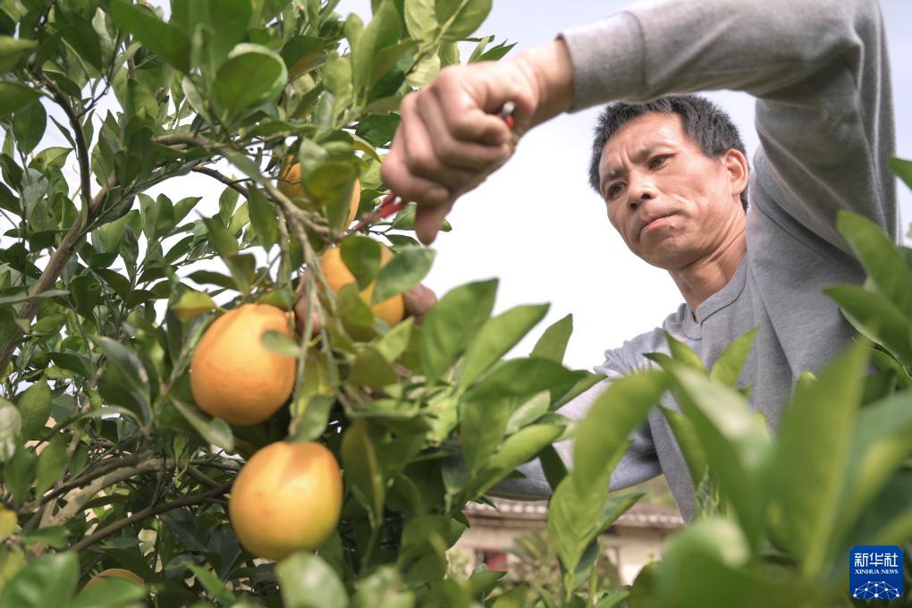 11月24日,古田縣黃田鎮金翼村村民采摘臍橙。