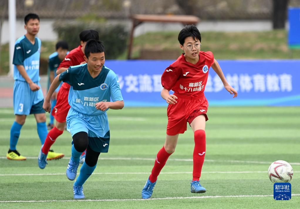 11月25日,西安高新區第十八初級中學(xué)的學(xué)生在陜西第六屆公益足球邀請賽上進(jìn)行比賽。