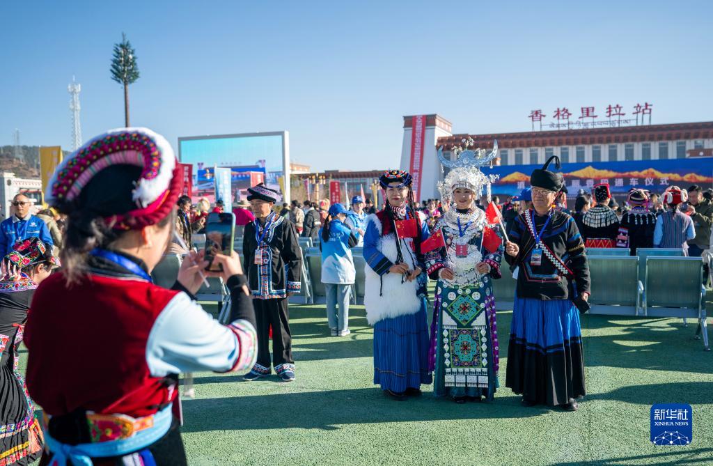 11月26日,參加麗香鐵路開(kāi)通儀式的少數民族代表用手機拍照留念。目前,中國移動(dòng)已實(shí)現麗香鐵路及沿線(xiàn)周邊區域4/5G信號100%覆蓋。
