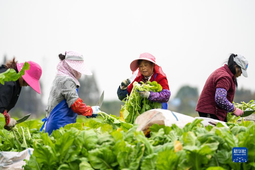 11月26日,在南縣武圣宮鎮太白洲村,菜農在采收榨菜。