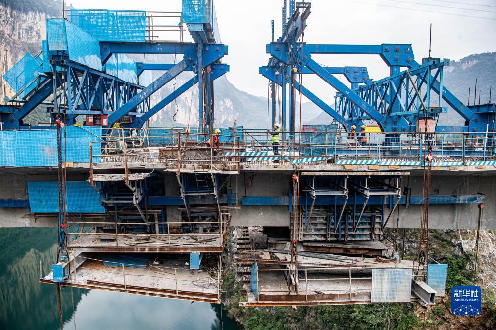 11月26日,在位于重慶市酉陽(yáng)土家族苗族自治縣龔灘鎮境內的阿蓬江大橋施工建設現場(chǎng),工人正在現場(chǎng)作業(yè)。