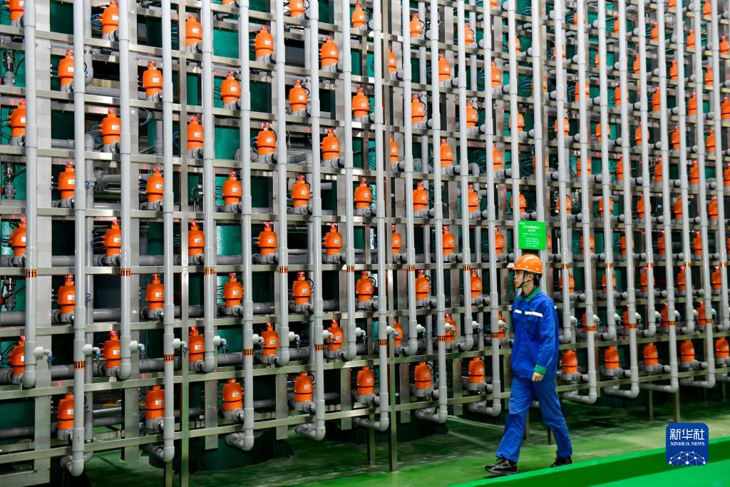 11月26日,在山東香馳健源生物科技有限公司,工作人員在巡查生產(chǎn)線(xiàn)。