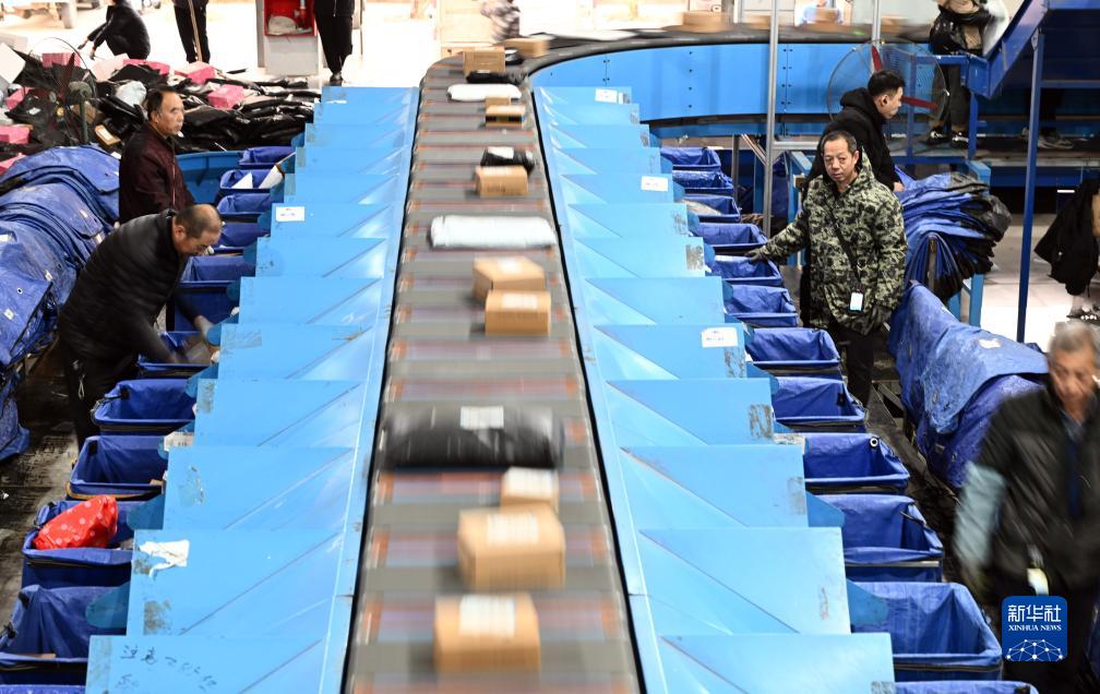 11月26日,在白溝新城中通快遞進(jìn)出港分揀自動(dòng)化操作車(chē)間,工作人員分揀快遞。