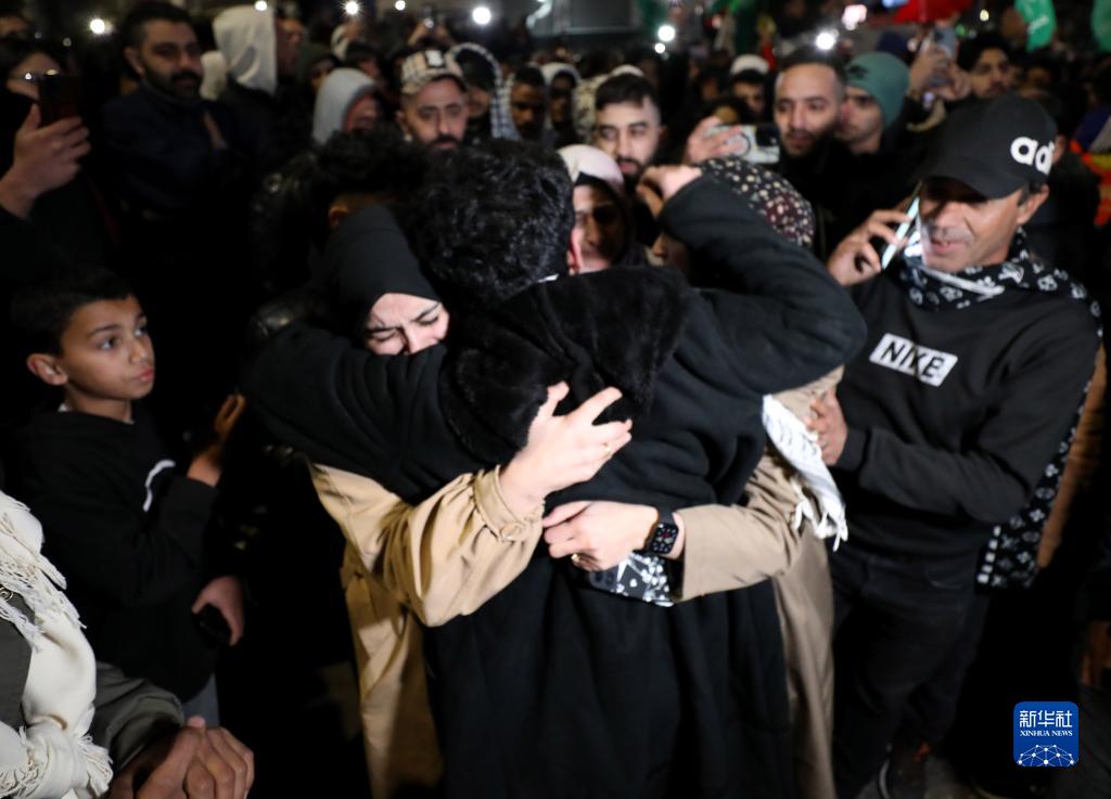11月26日,在約旦河西岸城市拉姆安拉,獲釋的巴勒斯坦人與親人團聚。