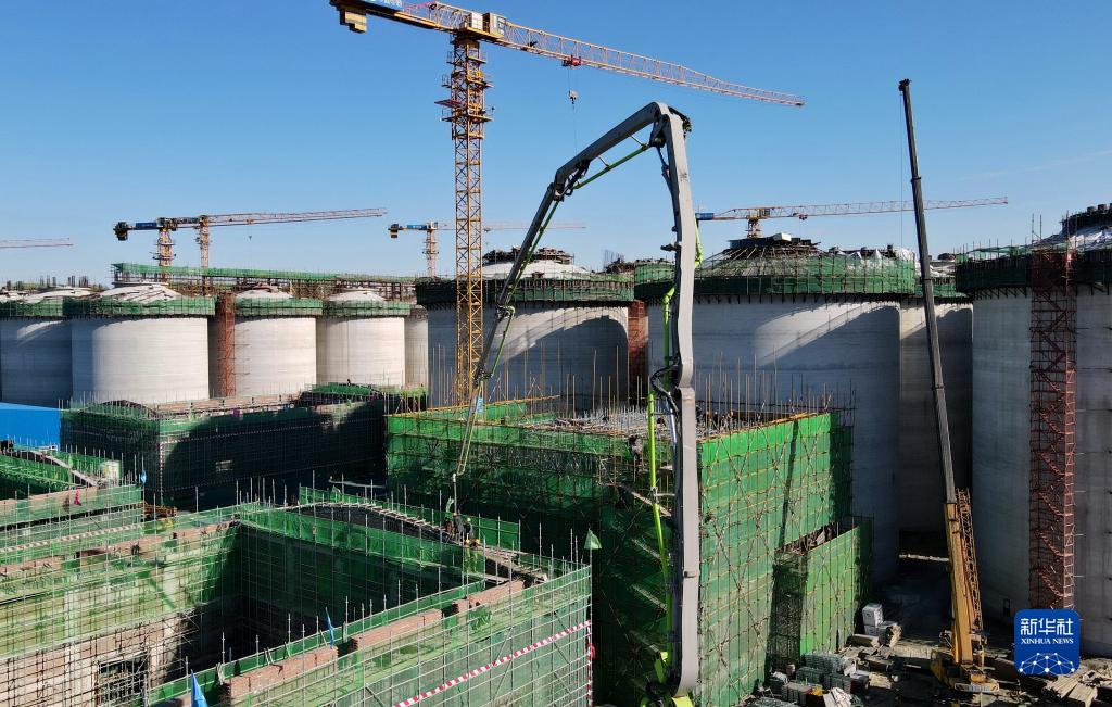 11月26日在河北省唐山市豐潤區拍攝的糧食安全應急儲備及食品深加工全鏈化綜合生產(chǎn)基地項目建設工地(無(wú)人機照片)。