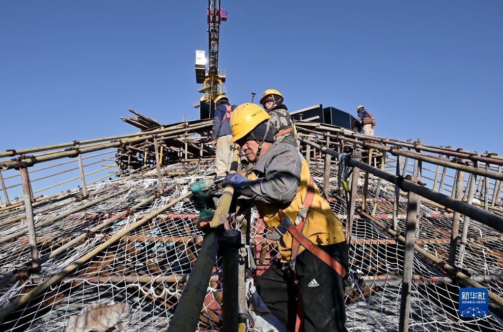 11月26日,工人在河北省唐山市豐潤區糧食安全應急儲備及食品深加工全鏈化綜合生產(chǎn)基地項目建設工地施工。