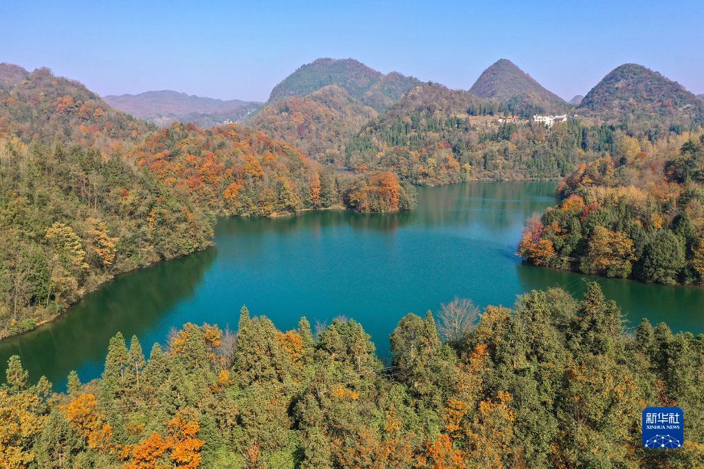 11月27日,在貴州省畢節市百里杜鵑管理區鵬程街道移山湖拍攝的景色(無(wú)人機照片)。
