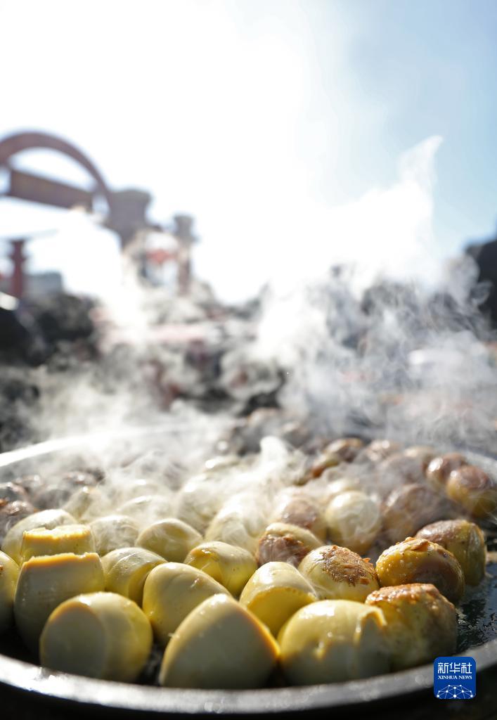 這是在紅旗大集上拍攝的當地小吃煎實(shí)蛋(11月28日攝)。